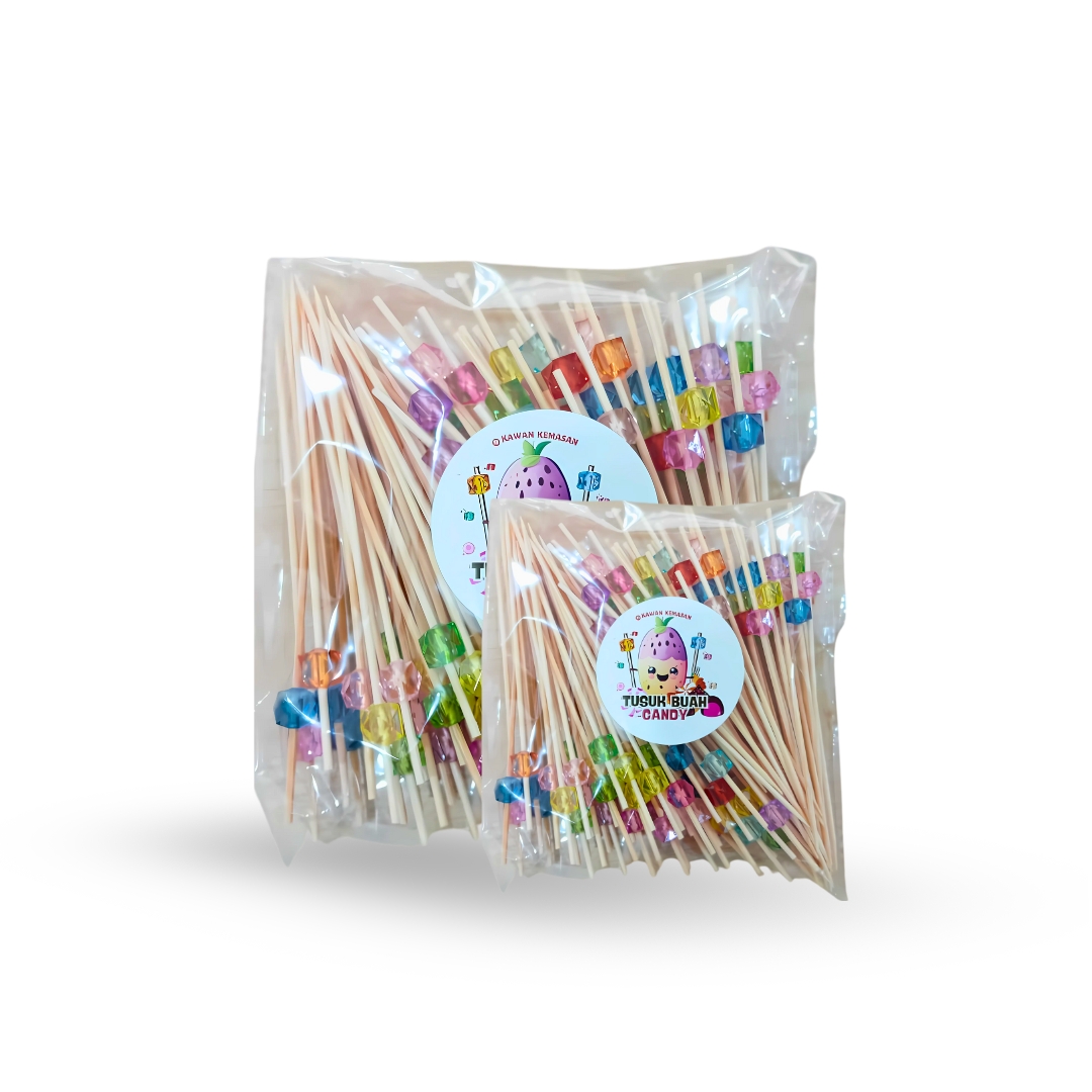 Tusuk Buah Candy adalah tusuk berbentuk stik atau tusukan yang digunakan untuk menyajikan potongan buah yang dilapisi atau dibalut dengan lapisan gula atau permen. Ini sering digunakan dalam acara pesta atau sebagai camilan manis yang menyenangkan.
